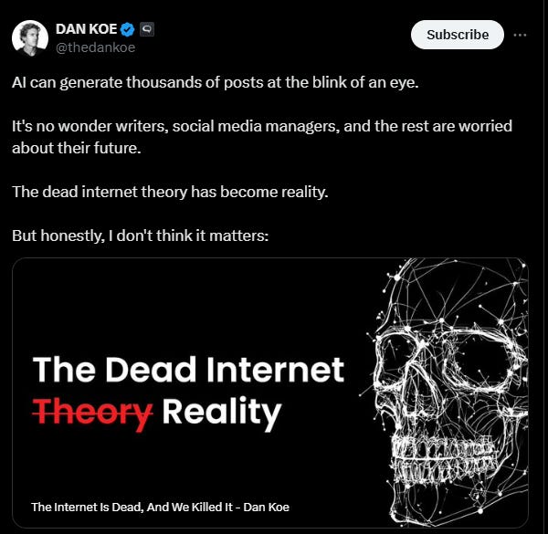 But let me share with you my greatest fear: “The Dead Internet Theory”